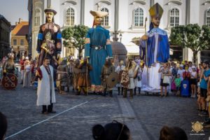 Géza fejedelem, felesége, Sarolt fejedelemasszony és a Szent Koronát hozó Asztrik püspök óriásbábja vonult fel szombaton a Királyok a Belvárosban sorozat újabb epizódjában. Az óriásokat a Sub Rosa régizenei együttes és a Borostyánkő Hagyományőrző Egyesület harcosai kísérték, akik az Országalmánál látványos bemutatót is tartottak a középkori harcművészetből. Az eseményt Palásti Máté gitárművész koncertje zárta a Zichy ligeti Zenepavilonban.