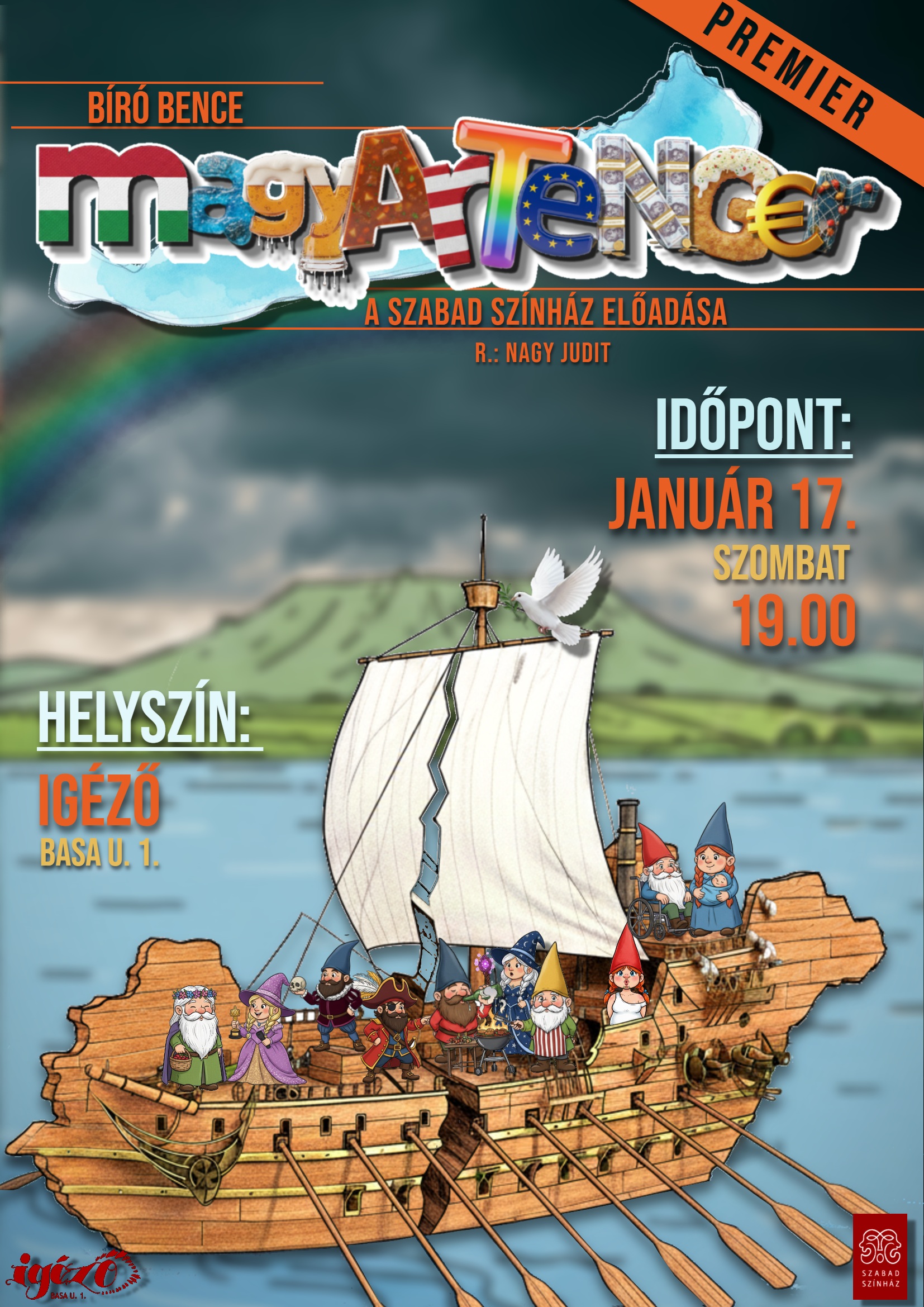 Színházi előadások – Tel: +36306960526; Email: igezo2014@gmail.com Bíró Bence: magyartenger Line Knutzon – Mesteremberek Schwajda György- Nagy Judit – A szent család – abszurd komédia Slawomir Mrozek – Emigránsok Urbán Péter – A három Erdődi Borbély László – Nagy Judit: Az átok – kikötői legenda 10+1 képben Mika Myllyaho – Pánik Ma nincs Hamlet Lovátett Lovagok Bogárka – Land Sven Nordqvist – Pettson karácsonya – mesejáték Az elcserélt ajándékok – Interaktív élőzenés, izgalmas Mikulásváró műsor gyermekeknek, családoknak A karácsonyi titok Médiahatás Inkább élnék Árkádiában A bűbájos lakat –interaktív gyermekelőadás Hullám A lány, aki hozott lélekből dolgozott Völgyhíd Káosz Kaliforniai álom Római Karnevál Vak Béla király Nyílt tengeren Emigránsok Hétország fejedelmei Az igazi Švejk unokája Fél élet Holdfényszonáta Vigyázat, szakadék! Béla király Világtalanok Audiencia 2 Férfiakat Szelistyének! Szentivánéji álom Lóvátett lovagok J.A.100 A bálvány Az orvos és a halál A lecke Tangó Ismeri a Tejutat? Estélyi órán A látogató Szent a béke! Audiencia Zuhanás közben Legyen a tenger II. A nehéz Barbara Antigone Vigyázat, szakadék! Csongor és Tünde Legyen a tenger! Escurial Széchenyi és az árnyak Félálmaink Nyílt tengeren Csoda Mit csinál a kongresszus? Károly Beszélj, mint az eső… Danton halála A kopasz énekesnő Tajtékos napok Luther Márton és Münzer Tamás,avagy a könyvelés bevezetése Változások Porond Örző József Attila műsor Sötét torony