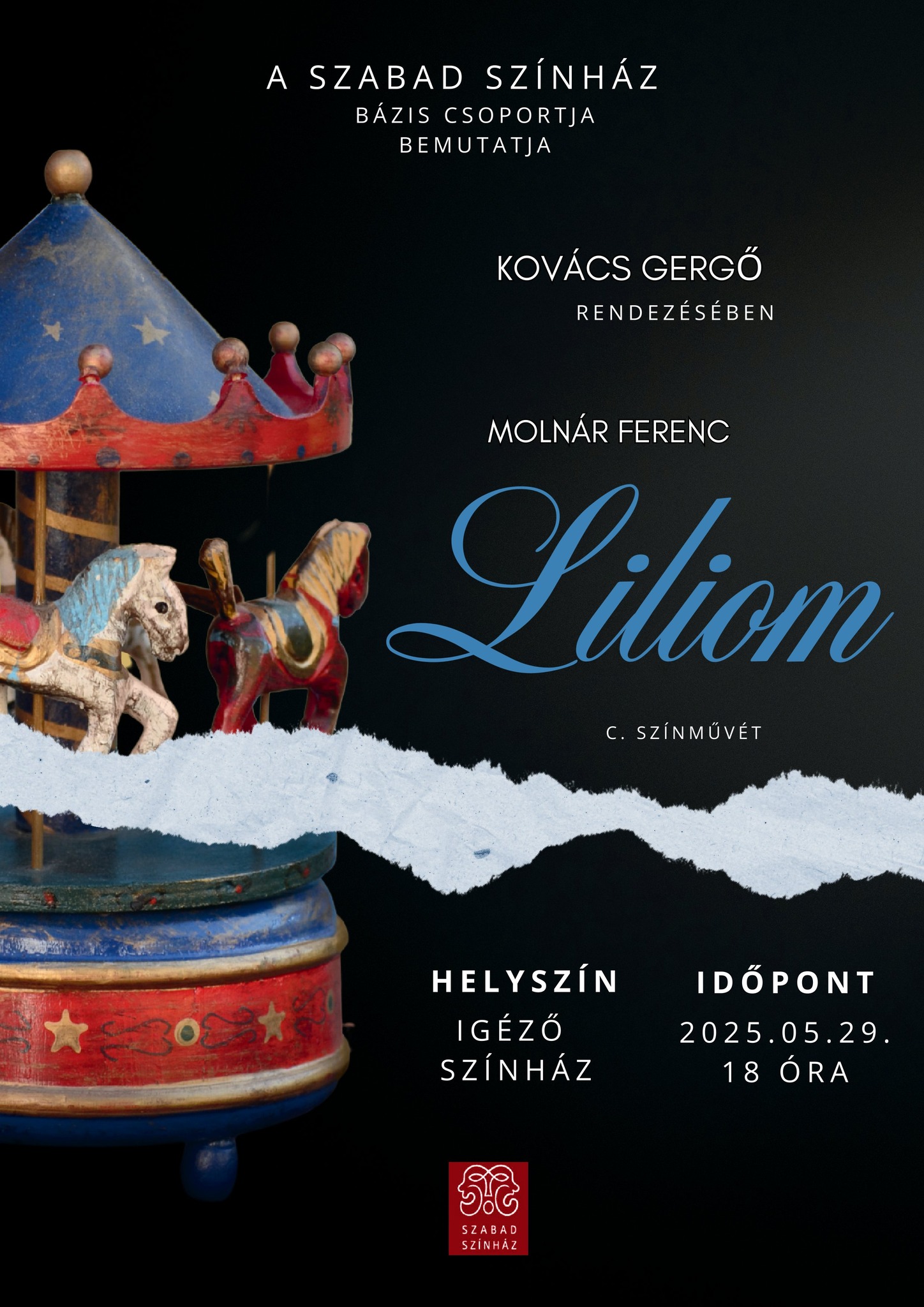 2025. május 29-én csütörtökön a negyedik, -Bázis- csoportunk vizsgaelőadása látható az Igézőben! Ebben az évben Kovács Gergő csoportka Molnár Ferenc: Lilomját mutatja be.
