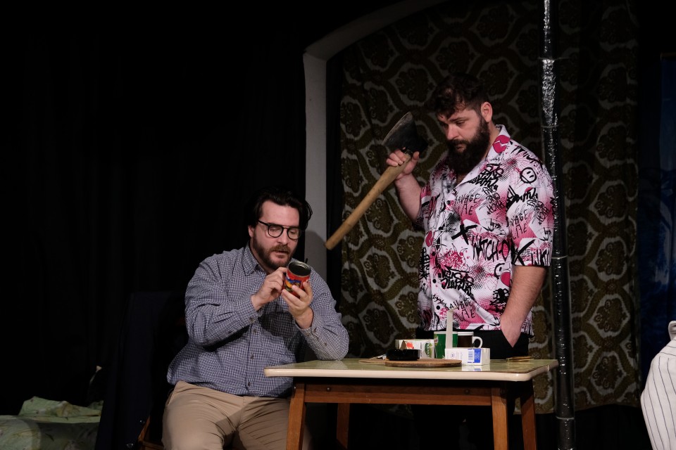 Az előadás-teremtette dohos pinceszobában valójában két foglyot látunk: egyikük a pénz, az anyagi javak, a másik a szabadság szellemiségének rabságában vergődik. Kettejük fájdalmas, és drámai szembenézése ez.