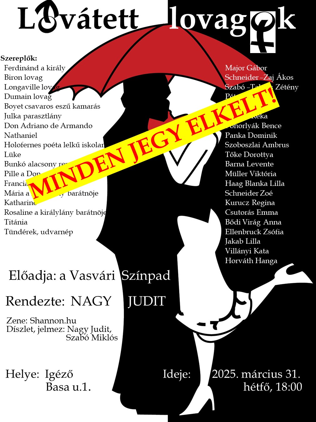 Az előadás díjmentes, ám a helyek száma korlátozott, ezért csak az @Igéző FB oldalra küldött és visszaigazolt regisztrációval tudjuk nézőinket fogadni. A további játékidőpontokról tájékoztatást adunk.